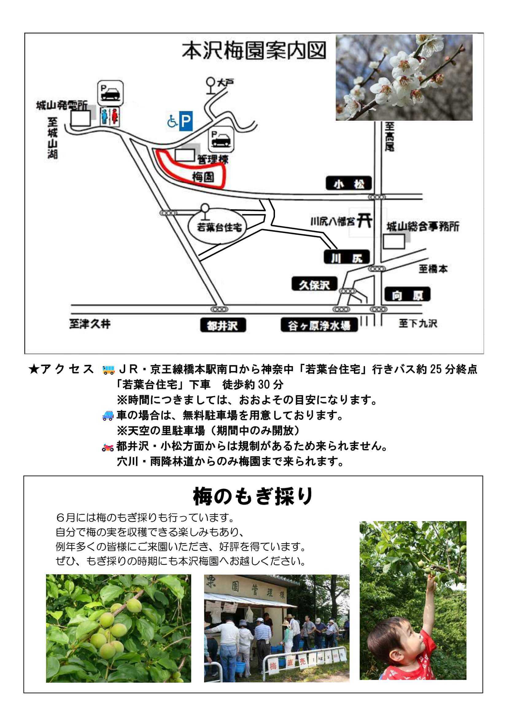 2月20日(金曜)~3月1日(日曜)に、本沢梅園が開園されます。(申込不要)