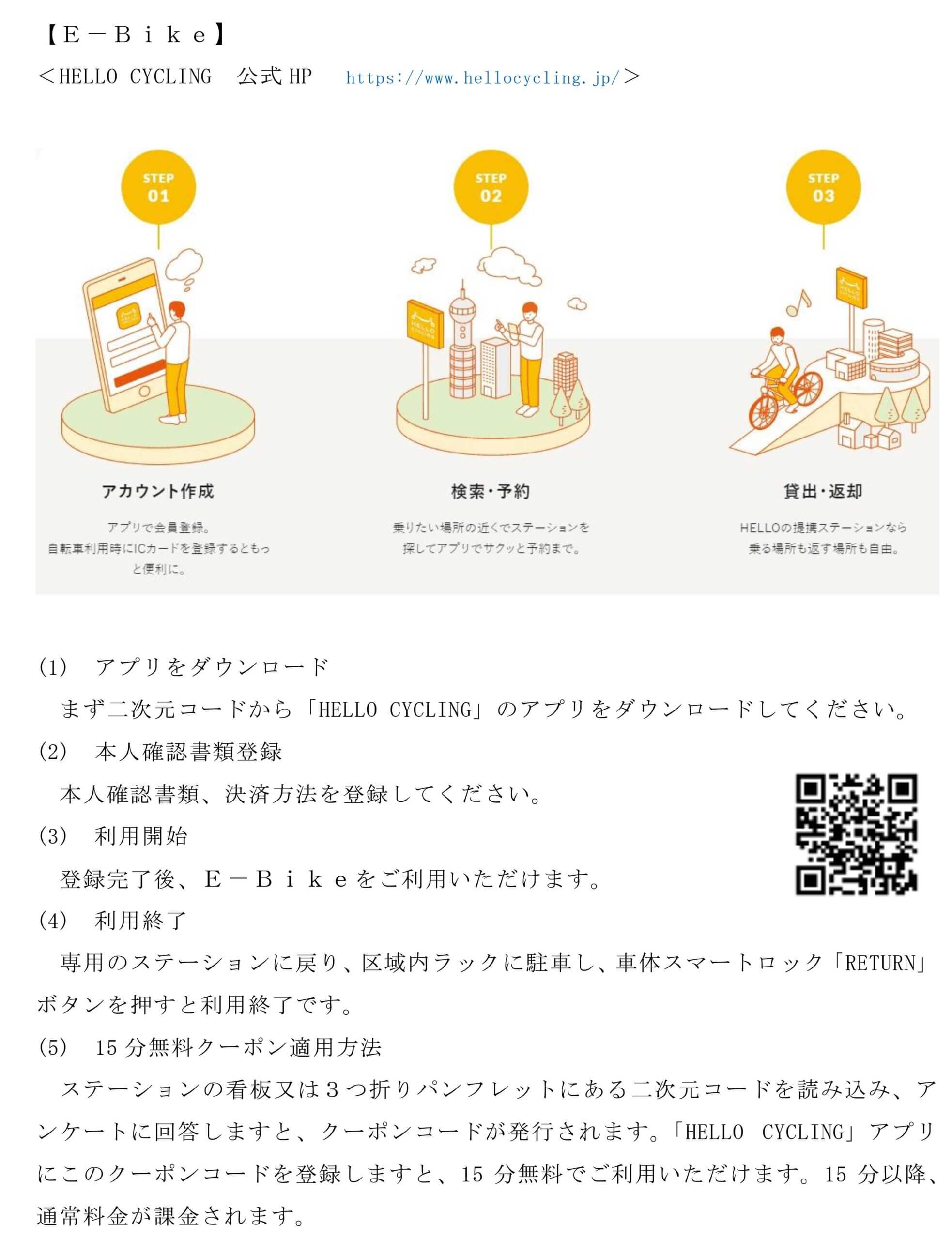 電動キックボードやスポーツ型電動アシスト自転車(E-Bike)により、ステーション間を自由に移動ができます。アプリ上でご利用登録をすることで、指定したステーション(乗降ポイント)での借入・返却 が可能です。